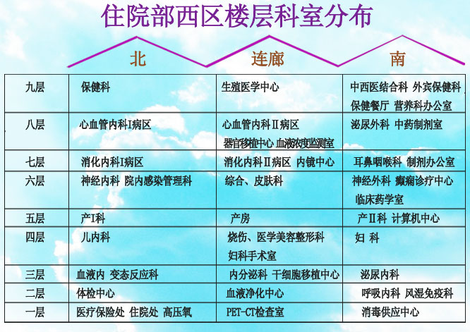 住院部楼层分布