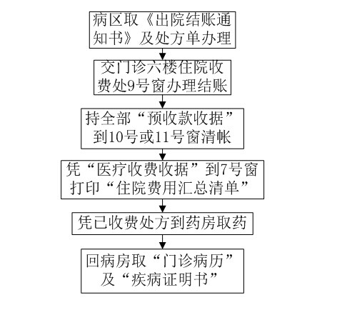 6号楼一楼住院收费处负责办理:入住5、6、8号楼内科、儿科、神经科、泌尿外科、器官移植、中医、皮肤、心血管、介入病区等病区病友
