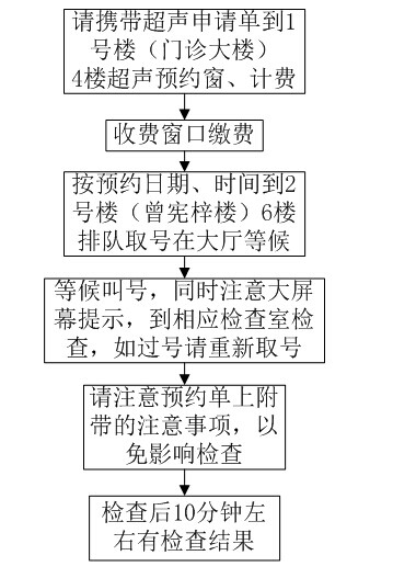 个人健康体检:->挂号-〉取号-〉选套餐(可咨询8号室医生)-〉填表(电话)-〉开单-〉交费-〉登记-〉B超号-〉体检