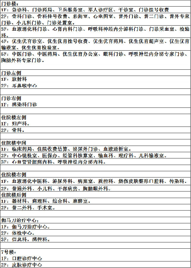 中国人民解放军第二0一医院布局楼层分布