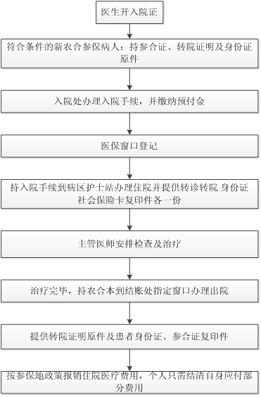 持有转诊转院的新农合参保人员(但患者如有外伤史,请在我院全额垫付医疗费用,自行回当地报销)。