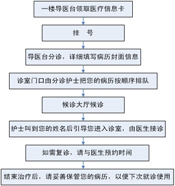 ●复诊患者按预约时间挂号后,携带病历直接进入诊室,由预约医生安排就诊。