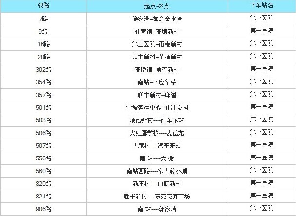 宁波市第一医院公交线路
