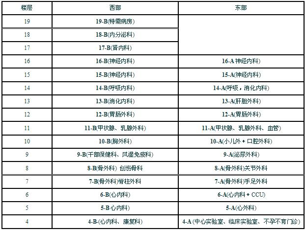 一、聊城市人民医院西区医疗保健中心病房楼层分布