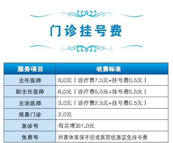 备注:耳鼻喉科和口腔科挂号费在原有的基础上加收2元的材料费。